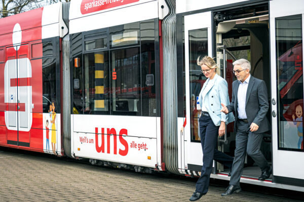 Die Sparkasse Freiburg-Nördlicher Breisgau und die VAG arbeiten bei der Finanzierung zahlreicher Projekte zusammen, die zentral für die Mobilitätswende und die angestrebte Klimaneutralität der VAG sind.